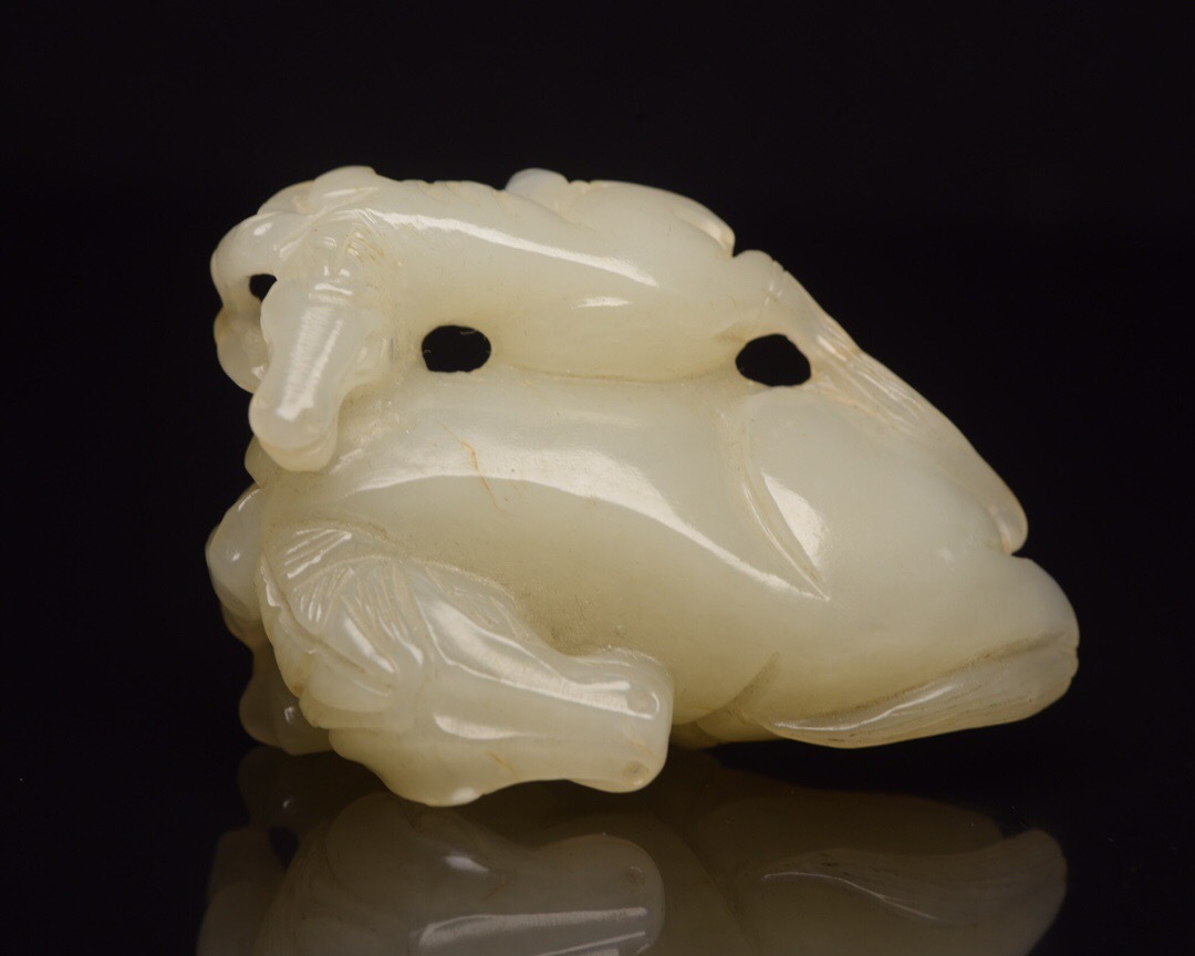 - 『館蔵珍品 和田玉製 細密彫 子母馬 置物 賞物』稀少珍蔵品 古賞物 貴重物品 収蔵品 中国古美術 時代物 古董品
