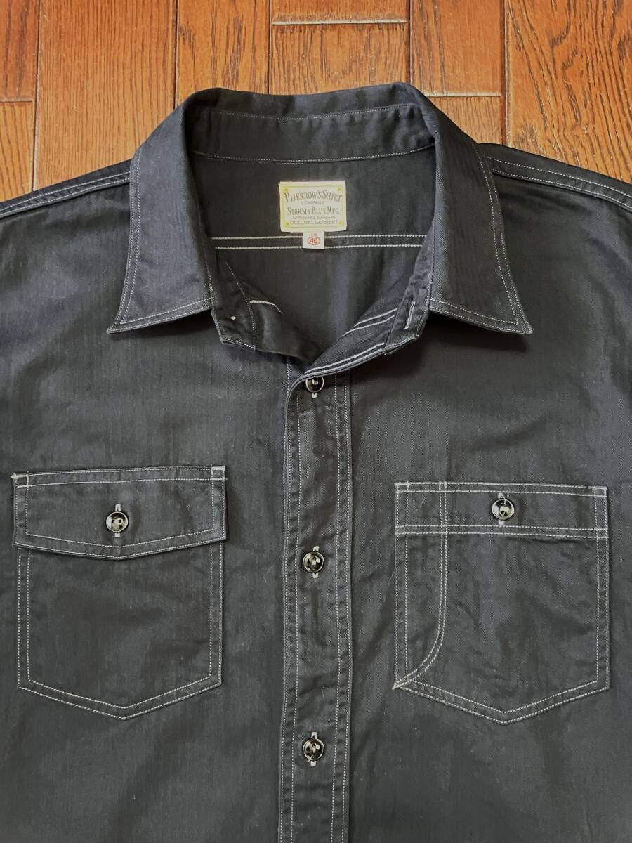 - フェローズ Pherrow’s ビンテージ スタイル マチ付き 長袖 ワークシャツ L 黒 ブラック ガチャポケ ストライプ 日本製