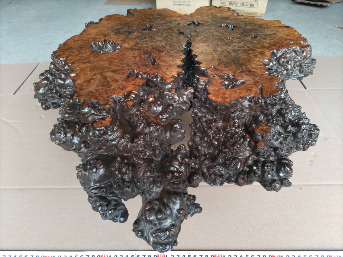 > ■送料無料!■瘤の座卓・H23×W75×D62cm■厚さ5cm■ちゃぶ台■花台■盆栽台■木製■天然木■一枚板(R4)