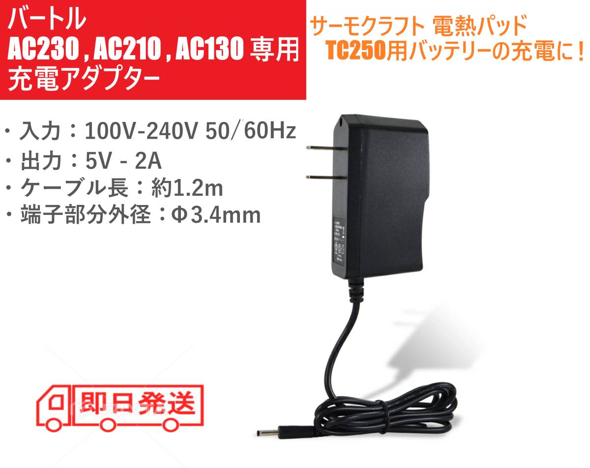 > 即日発送 バートル AC230 AC210 AC130 5V 2A 充電器 サーモクラフト 電熱パッド TC250 用のバッテリーの充電に 充電ケーブル アダプター ②