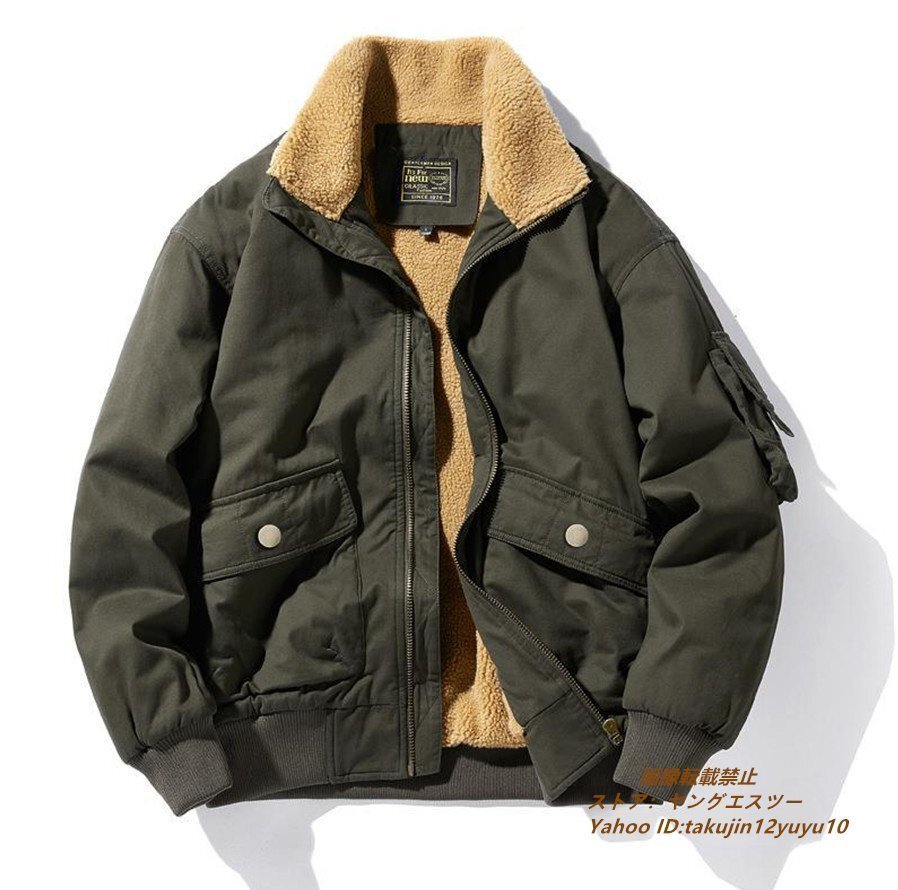 - 新品 メンズ フライトジャケット 防寒 ジャンパー ブルゾン ムートンコート 超カッコイイ ma-1 アウター スカジャン三色有り オリーブ 4XL