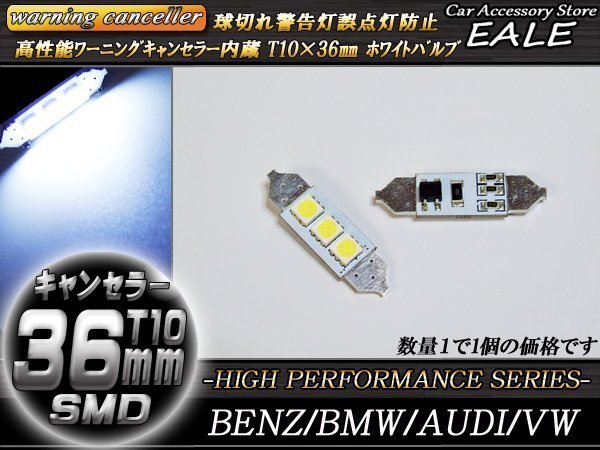 - T10×36mm 37mm 警告灯キャンセラー内蔵 LEDバルブ ホワイト 3SMD フェストン球 ベンツ BMW AUDI E-55