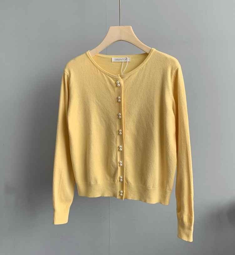 - カーディガン パールボタン 無地 ニット シンプル フリー ライトグレー