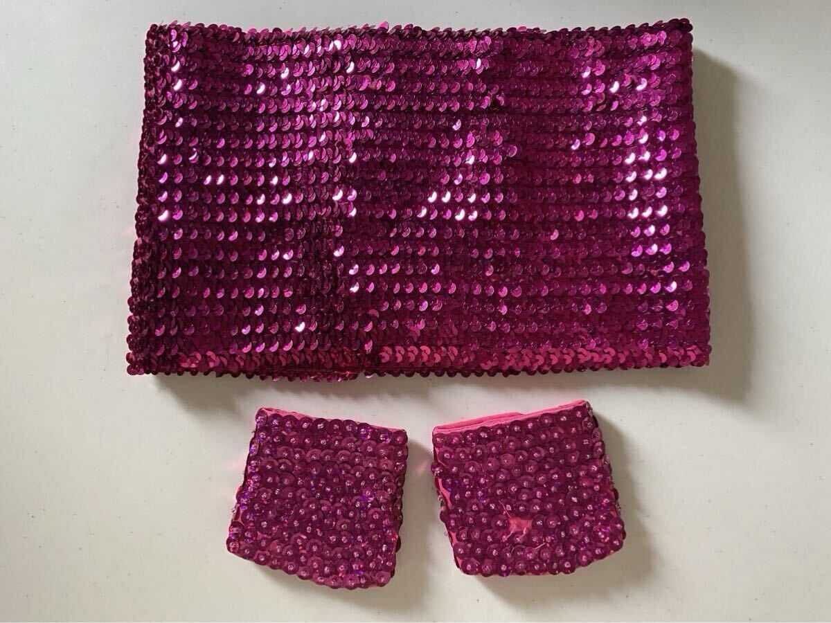 > 匿名配送 キッズ衣装 スパンコール ハギレ リメイク ピンク セットアップ 130 140