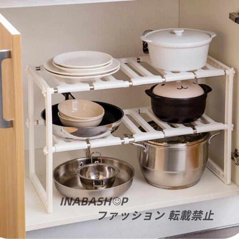 - 多機能キッチン棚ステンレス伸縮下水槽棚着地式二層鍋棚収納整理棚