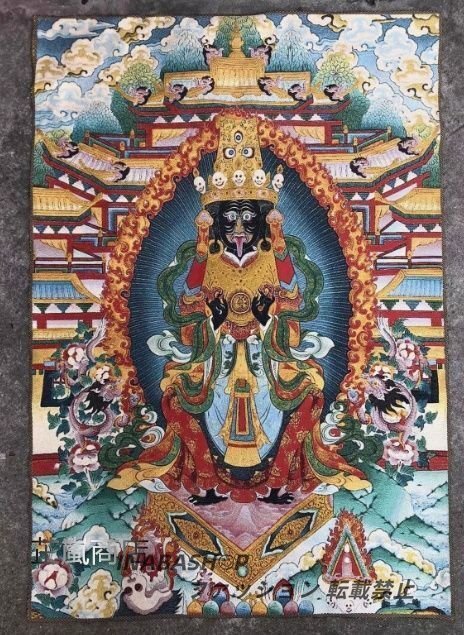 - 財運女神ザキ・ラム 金糸刺繍掛け軸 チベット密教美術