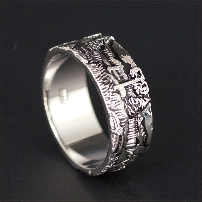 - [RING] Vintage Silver 風景 指輪 田舎の木造住宅 木々 動物 森林 ヴィンテージ デザイン シルバー リング 14号