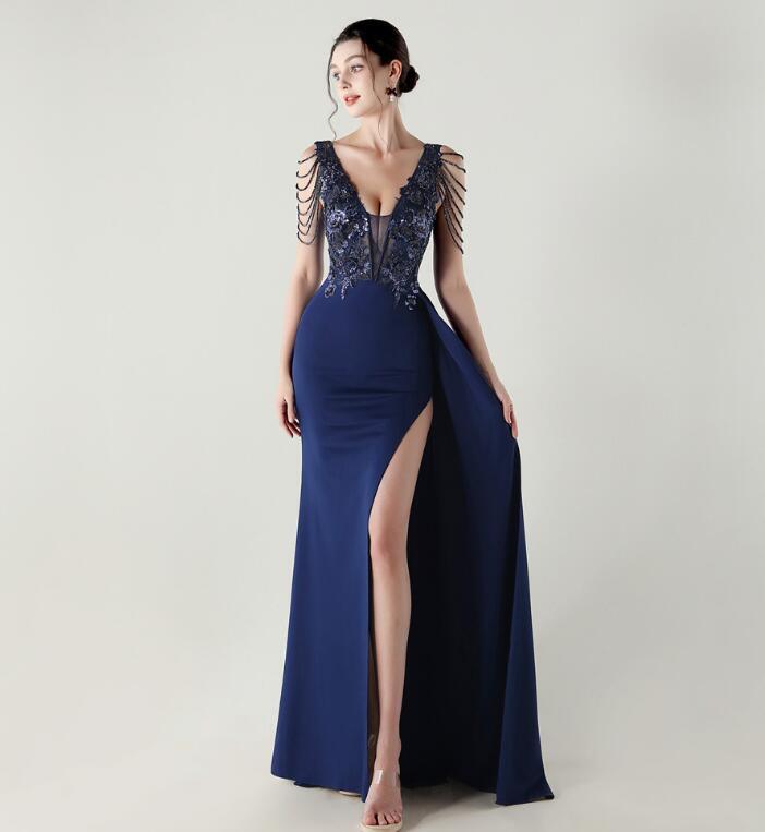- 330 ワンピースladiesレディース ◇ 良質 魅惑Styleセクシー 披露宴dress ロング丈 ブルー
