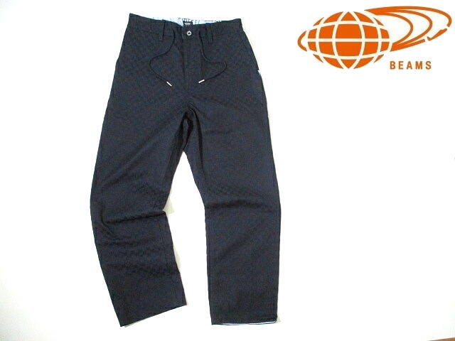 - 新品 未使用に近い!■ ビームス リンクス チェッカー柄 イージーパンツ 紺 ネイビー メンズ BEAMS S 市松模様 シャドー