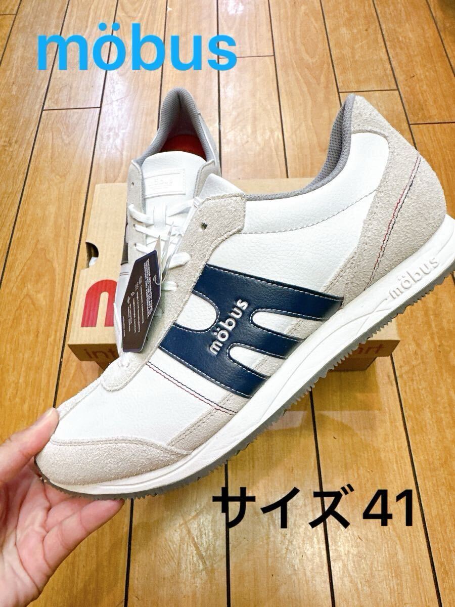 - ☆新品・本革☆mobus STRAS モーブス ストラス ホワイト ネイビー レトロラン レザー メンズ スニーカー