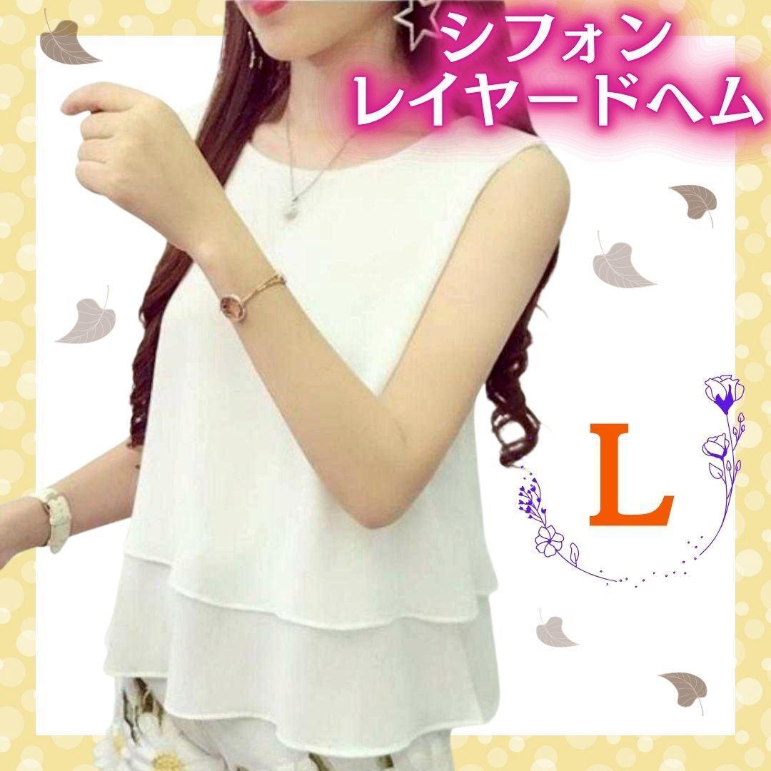 - シフォン タンクトップ L ラウンドネック キャミソール クルーネック ホワイト