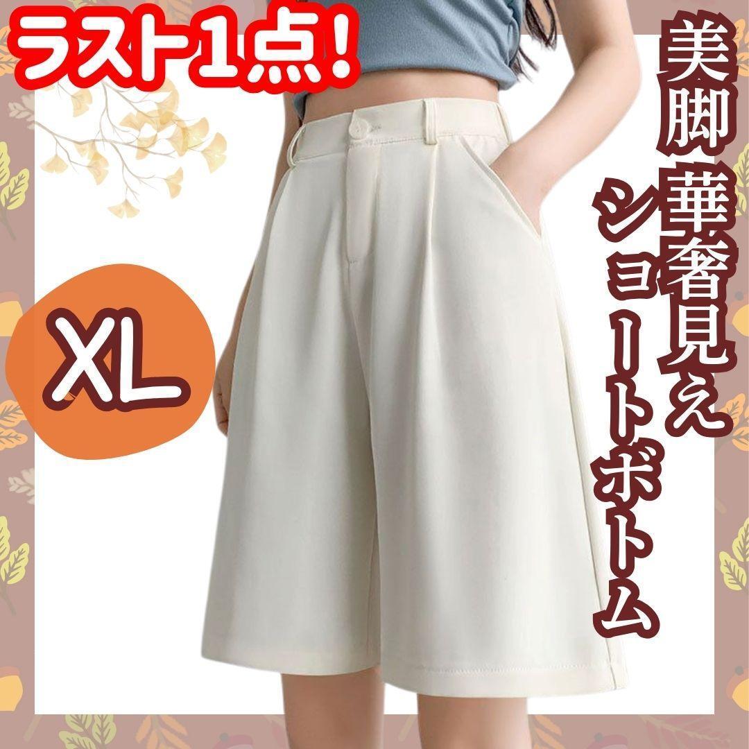 - ラスト1点! 快適 ハーフパンツ XL ハイウエスト 美脚 Aライン ホワイト