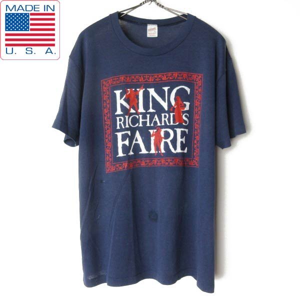 > 1985年製 USA製 KING RICHARD'S FAIRE 半袖 Tシャツ 紺系 L イベント 両面プリント アメリカ製 80s ビンテージ D152-01-0028ZV