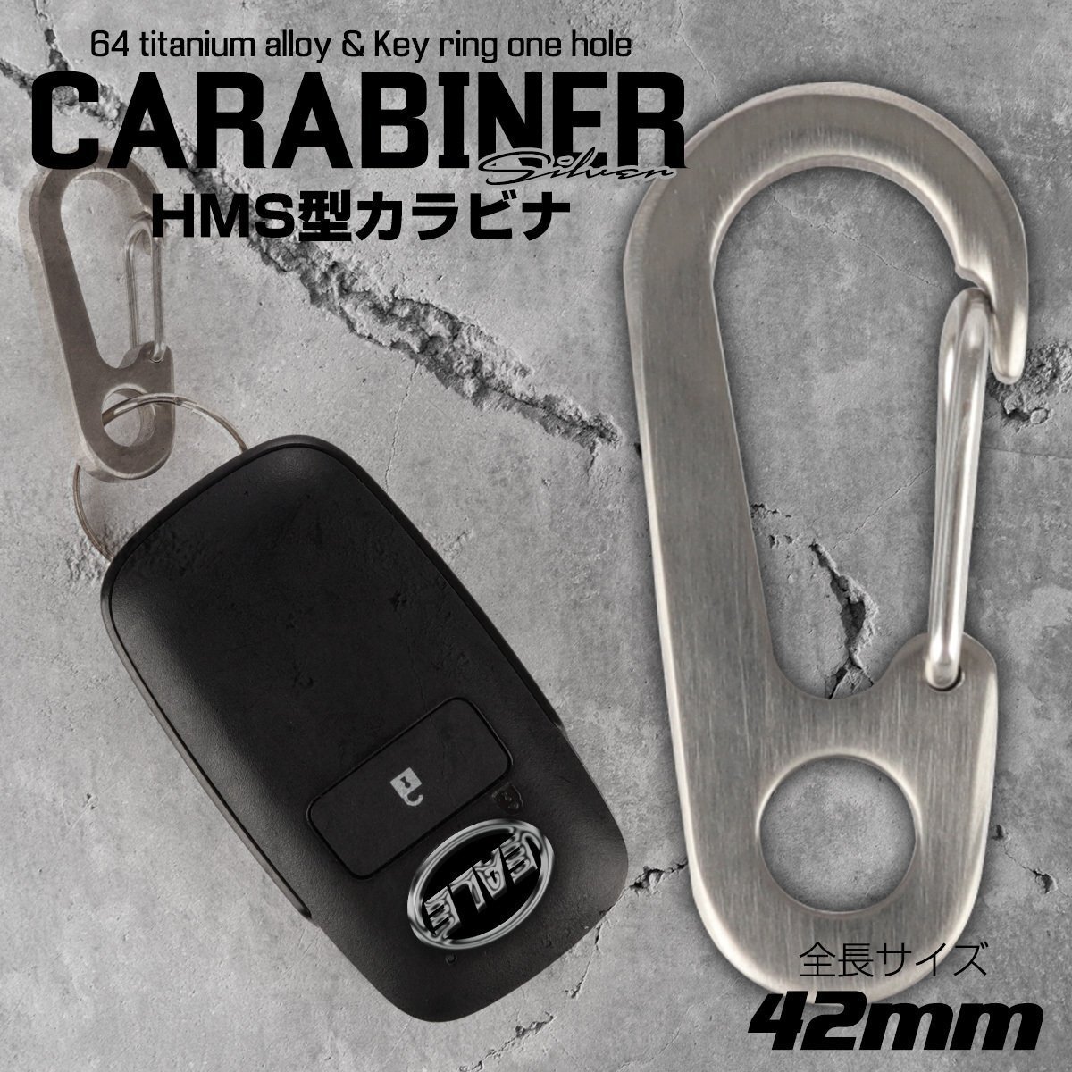 - カラビナ フック 42mm HMS型 洋ナシ型 ワイヤーゲート シルバーカラー チタン製 キーリングホール付き JA952