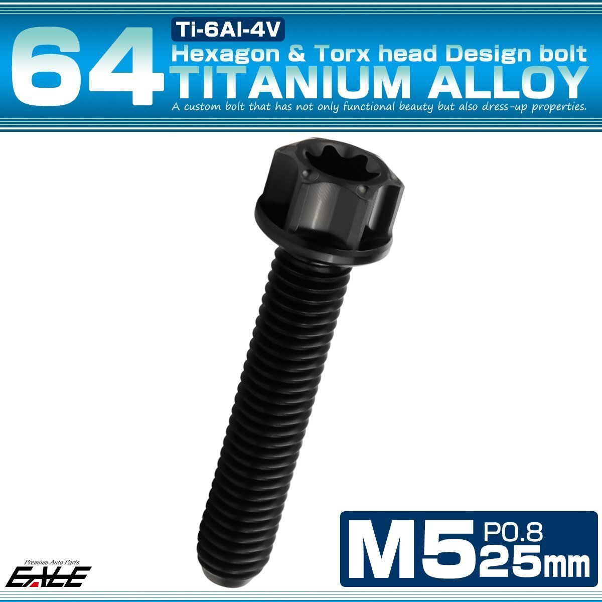 > 64チタン M5×25mm P0.8 ホールヘッド トルクス穴 フランジ付き 六角ボルト ブラック JA1158