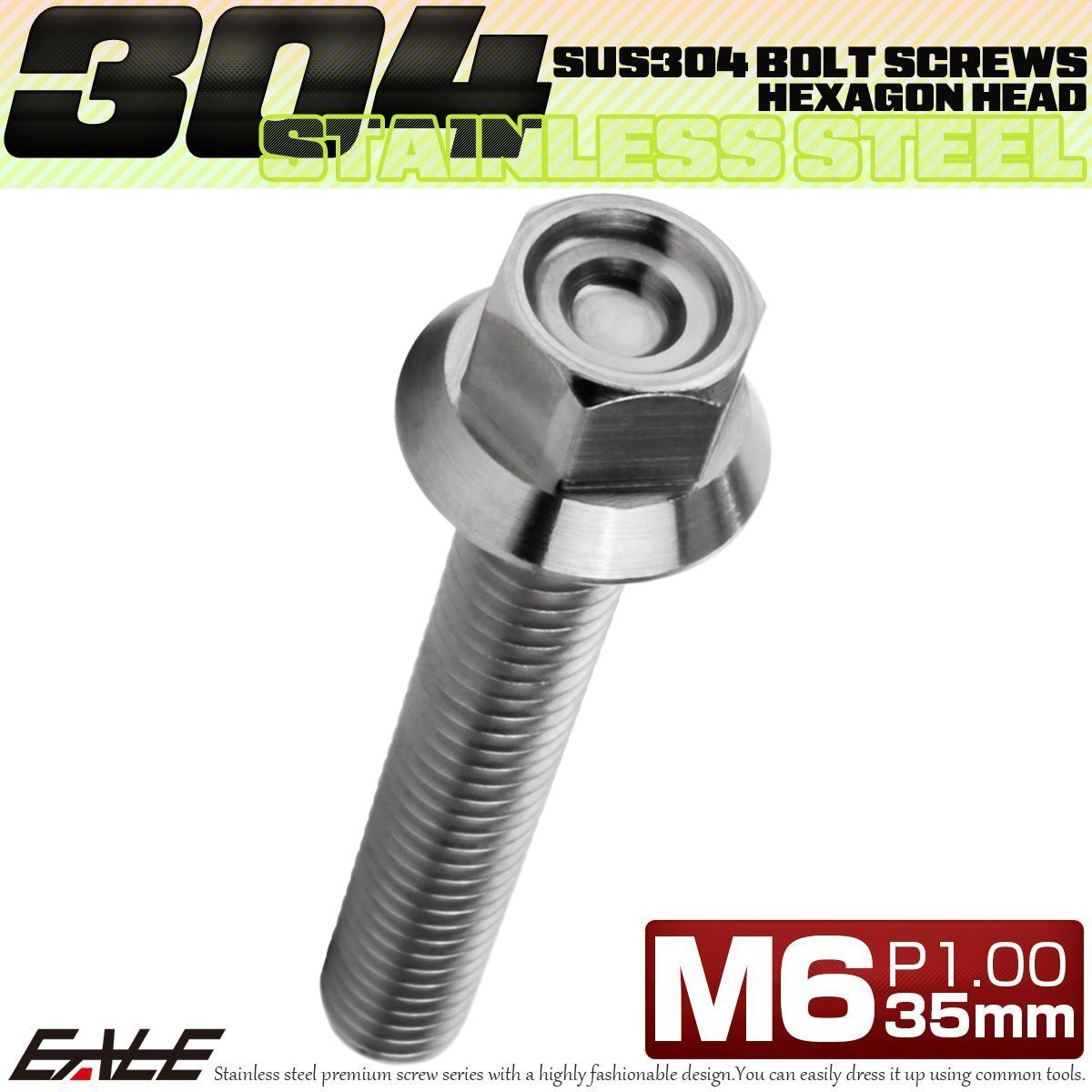 > M6×35mm P1.00 フランジ付き 六角ボルト カスタムヘッド SUS304 ステンレス シルバー TB1252