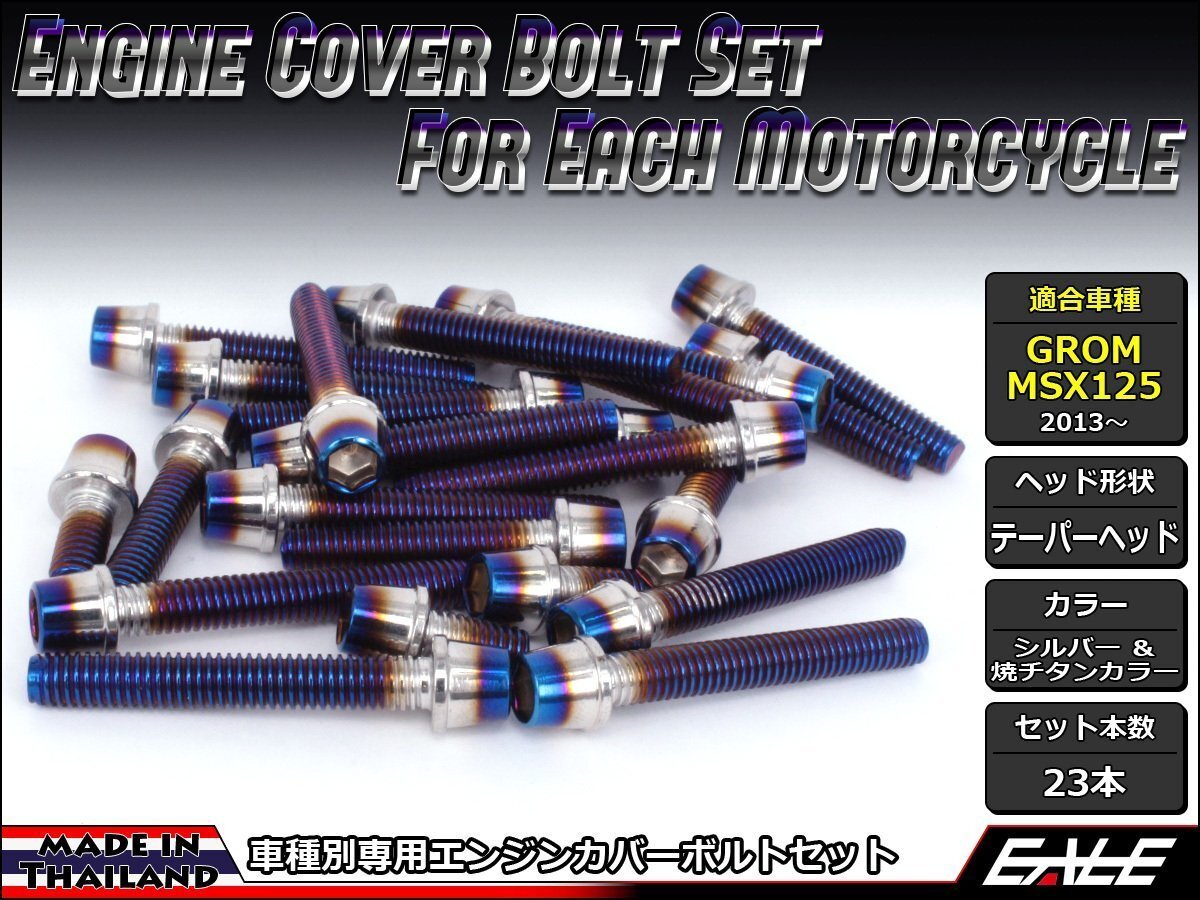 - GROM/MSX125用 エンジンカバー ボルト23本セット ステンレス製キャップボルト使用 CTCテーパーヘッド シルバー&焼チタンカラー TB6007