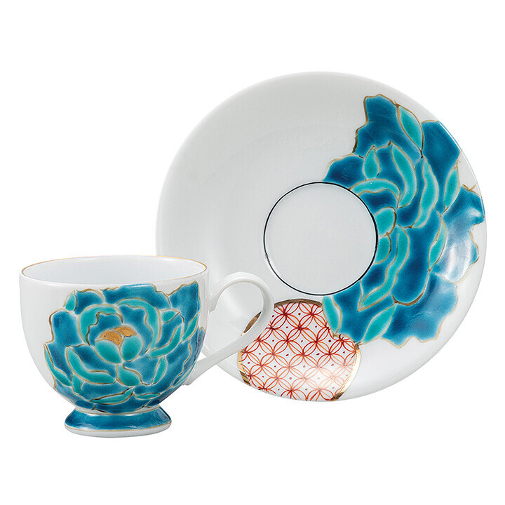 - 九谷焼! 佐藤剛志 ☆青牡丹・カップ&ソーサー☆ K9-1085 新品 コーヒー 紅茶 ミルク ラテ エスプレッソ カプチーノ 茶器 ギフト