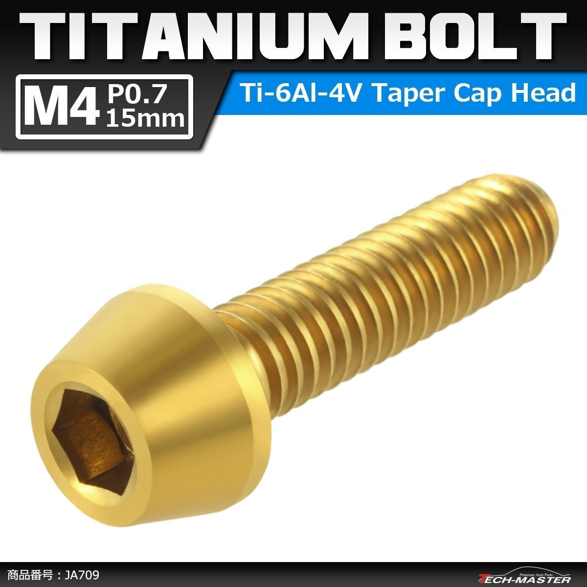 - M4×15mm P0.7 64チタン合金 テーパーヘッド 六角穴付き キャップボルト ゴールドカラー 車/バイク/自転車 1個 JA709