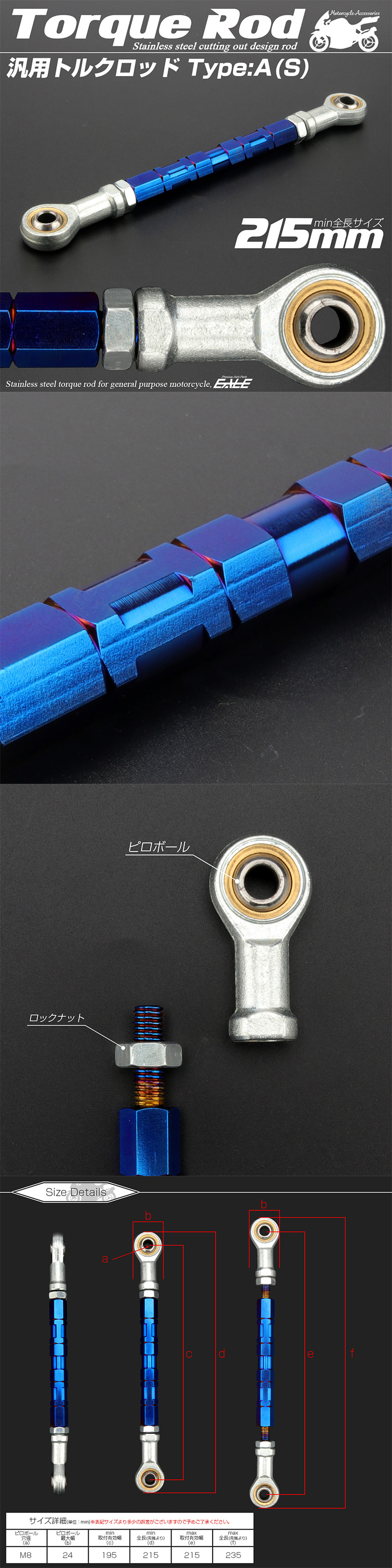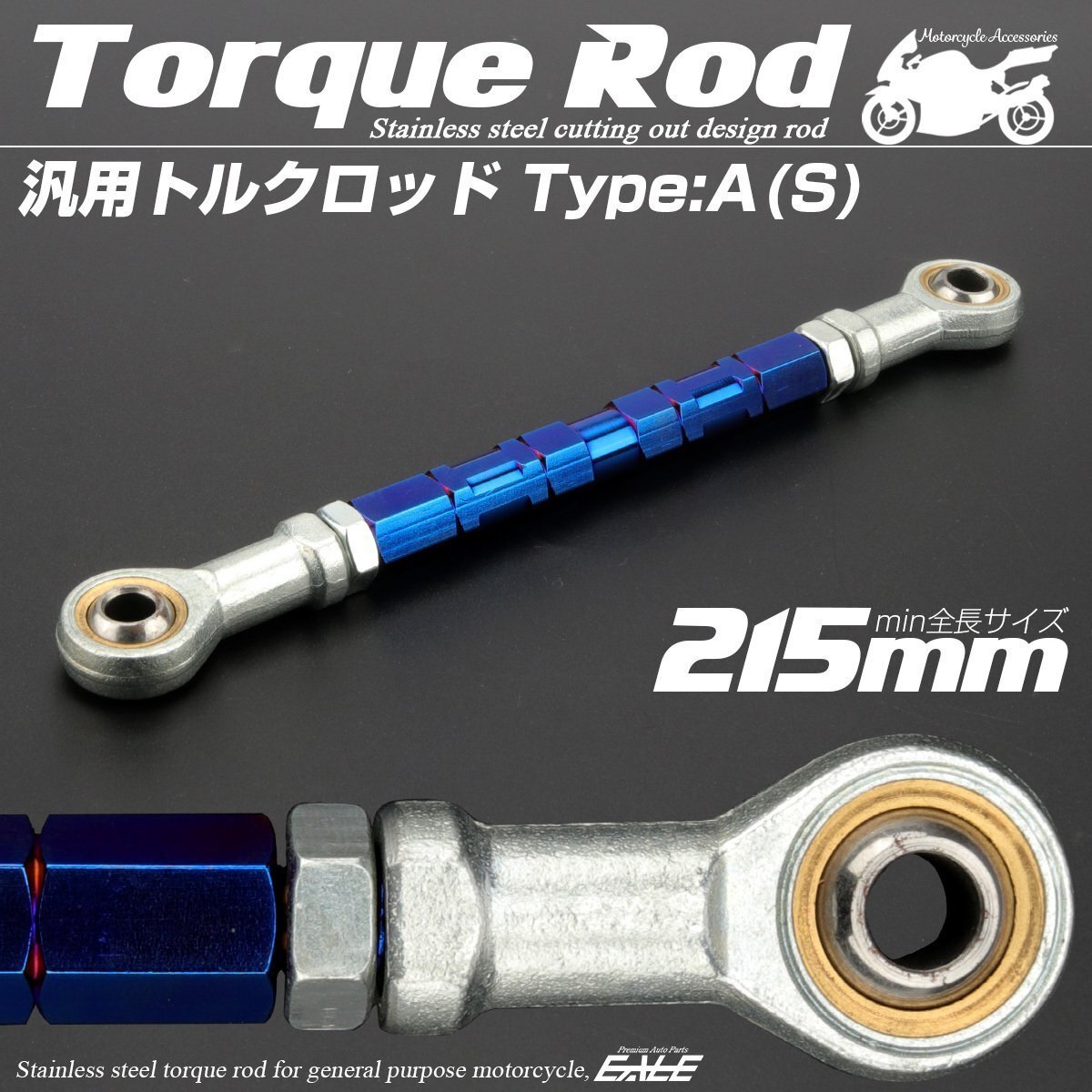 > 汎用 ブレーキ トルクロッド Sサイズ 取付幅195-215mm カラー ブルー タイプA ターンバックル ピロボール TH0058