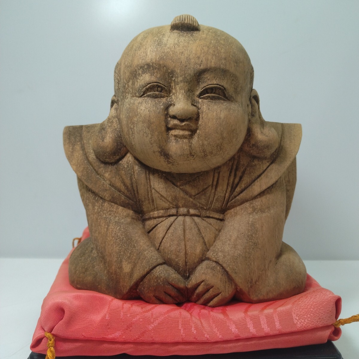 - 木彫り 福助 オブジェ 彫刻 置物 縁起物 インテリア オブジェ レトロ