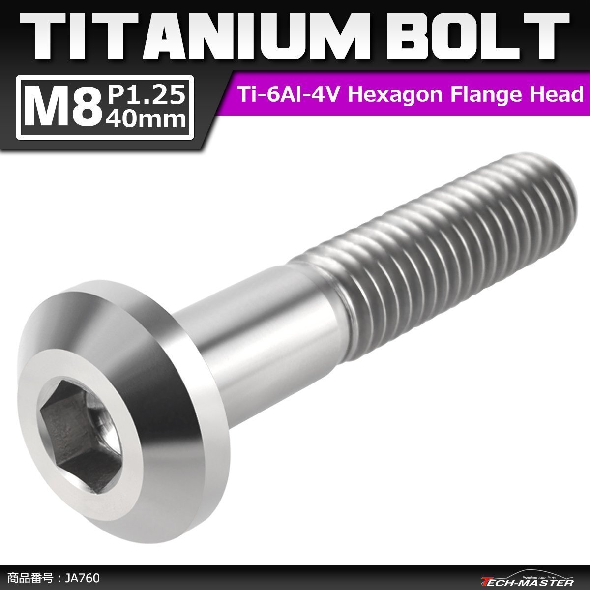 > M8×40mm P1.25 64チタン合金 テーパーヘッド 六角穴 ボタンボルト シルバーカラー 素地 車/バイク 1個 JA760