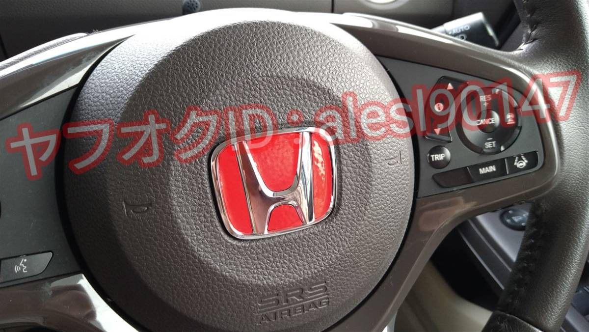 - ヴェゼル RV5 e:HEV Z ステアリング エンブレム シート ステッカー カスタム パーツ 内装 ハンドル インテリア グロスレッド 赤