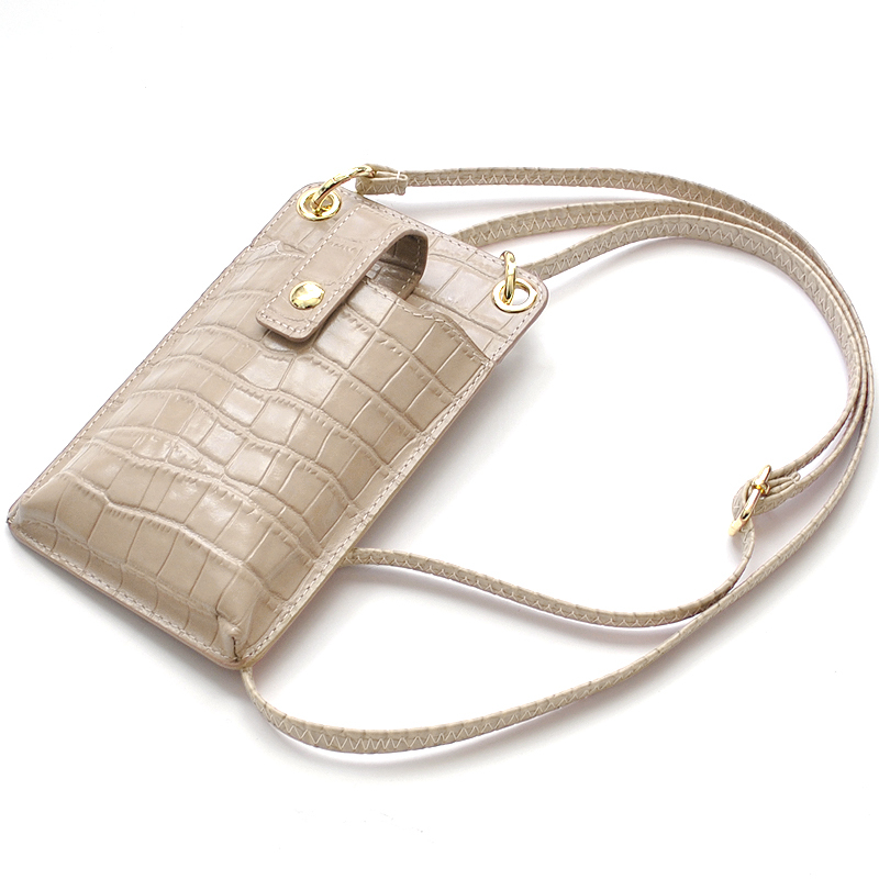 - 【MOMO】牛革クロコ型押しショルダースマホポーチ ベージュ×1個