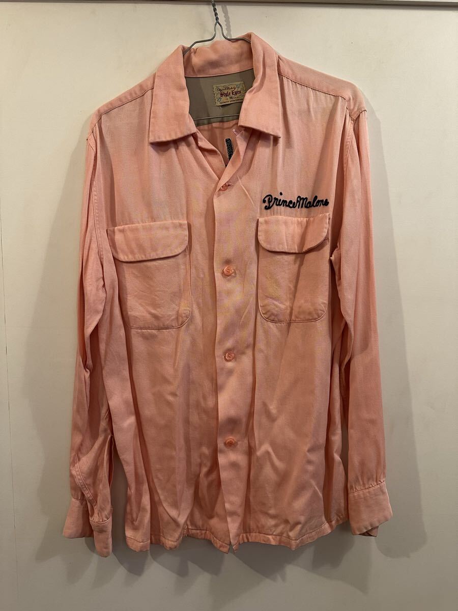 > 東洋スタイルアイズボーリングシャツビンテージ復刻M40's50'sギャバシャツアメカジアメリカンロカビリー 長袖シャツレーヨンピンク