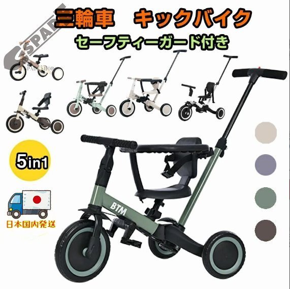 - 【国内発送】子供用三輪車 4in1 自転車 オリジナル 押し棒付き 安全バー付き キックボード