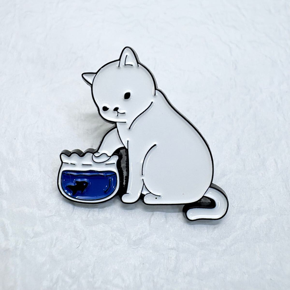 - 【ピンバッジ】白猫さんと金魚鉢 いたずら にゃんこ かわいい