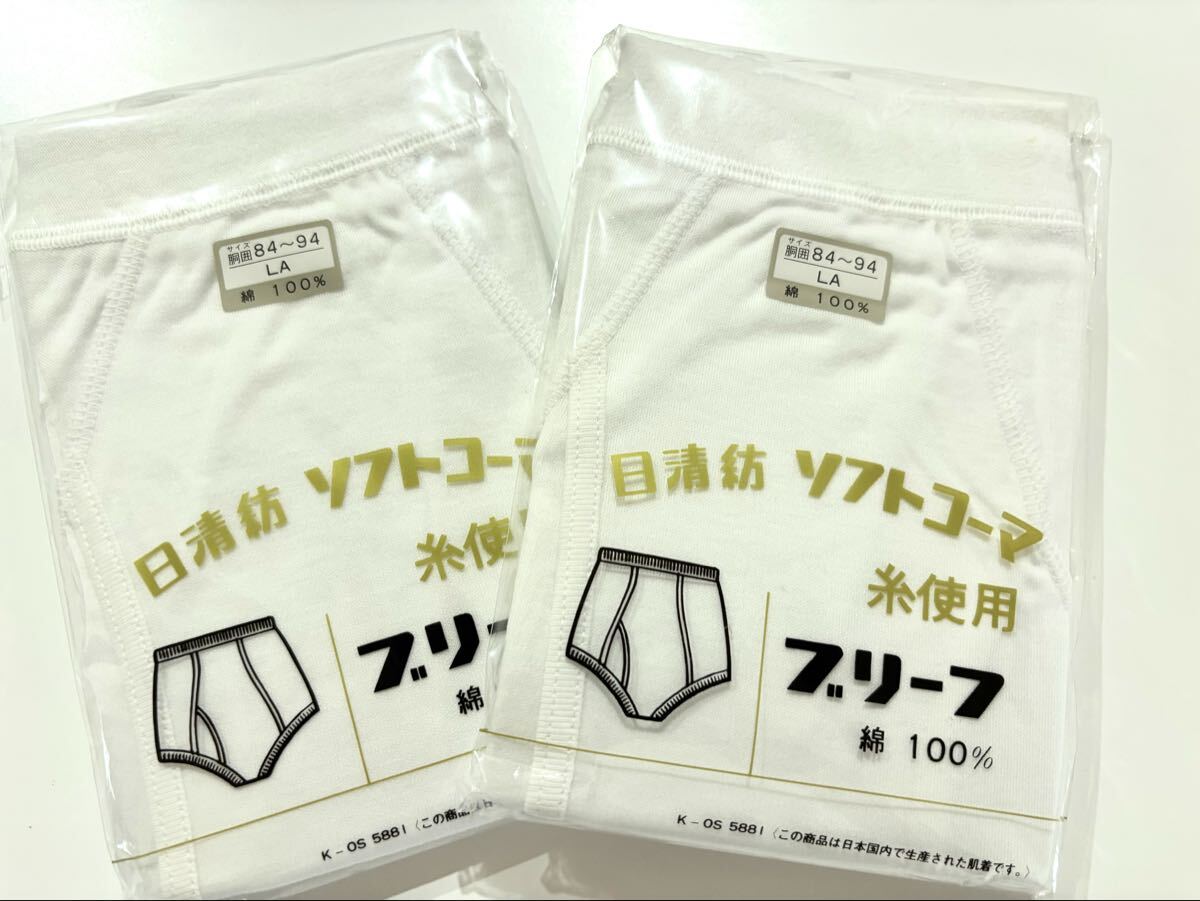 - 2点 LAサイズ ウエスト84〜94㌢ レトロ 日清紡 白ブリーフ 紳士用 下着 ブリーフ パンツ 綿100% ソフトコーマ糸