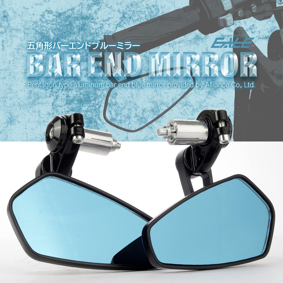 - 汎用 バーエンドミラー 五角形 ブルーミラー アルミ製 ブラック 左右セット S-283-BM