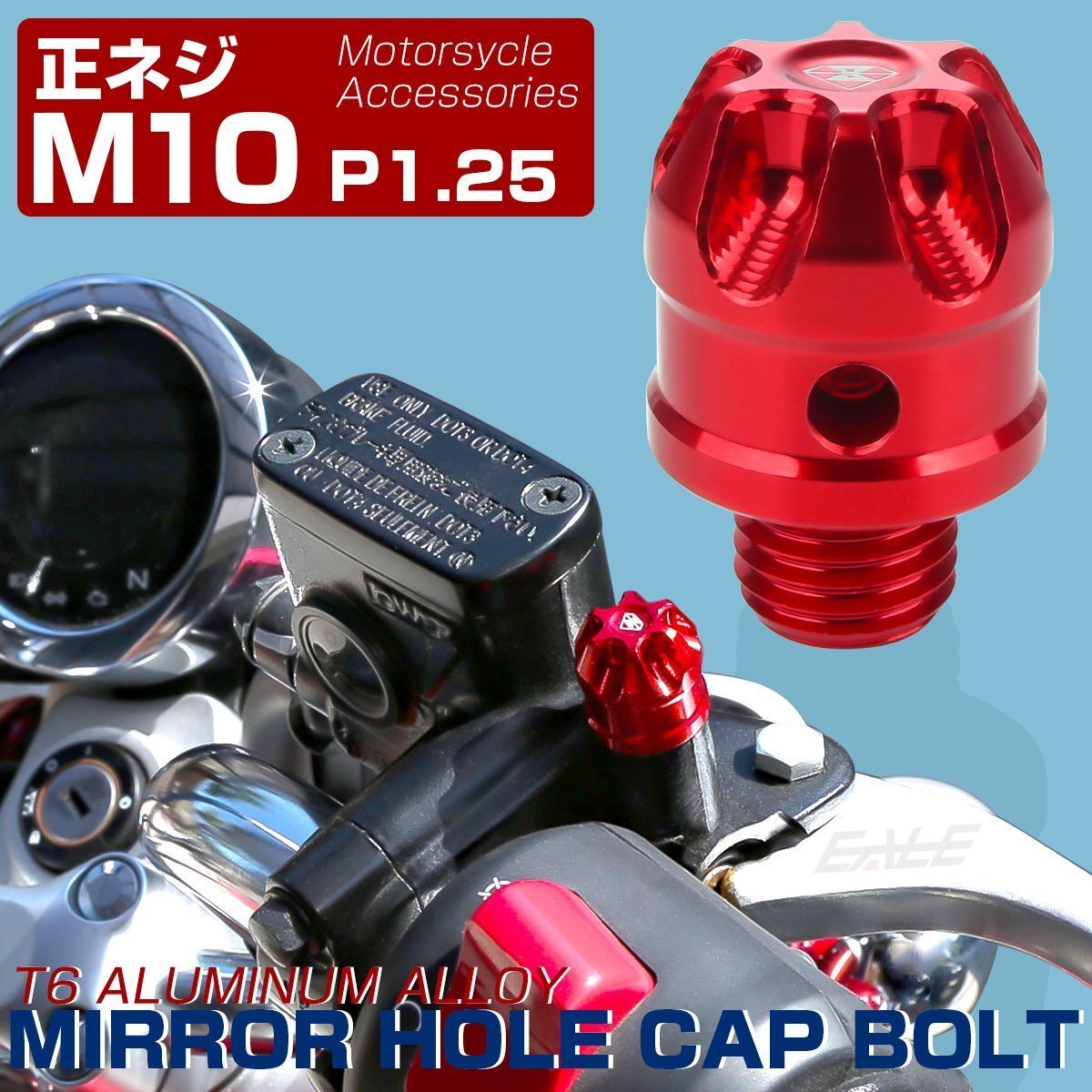 - M10 正ネジ P1.25 汎用 ミラーホールカバー デザインキャップ アルミニウムCNC削り出し レッド S-927-R