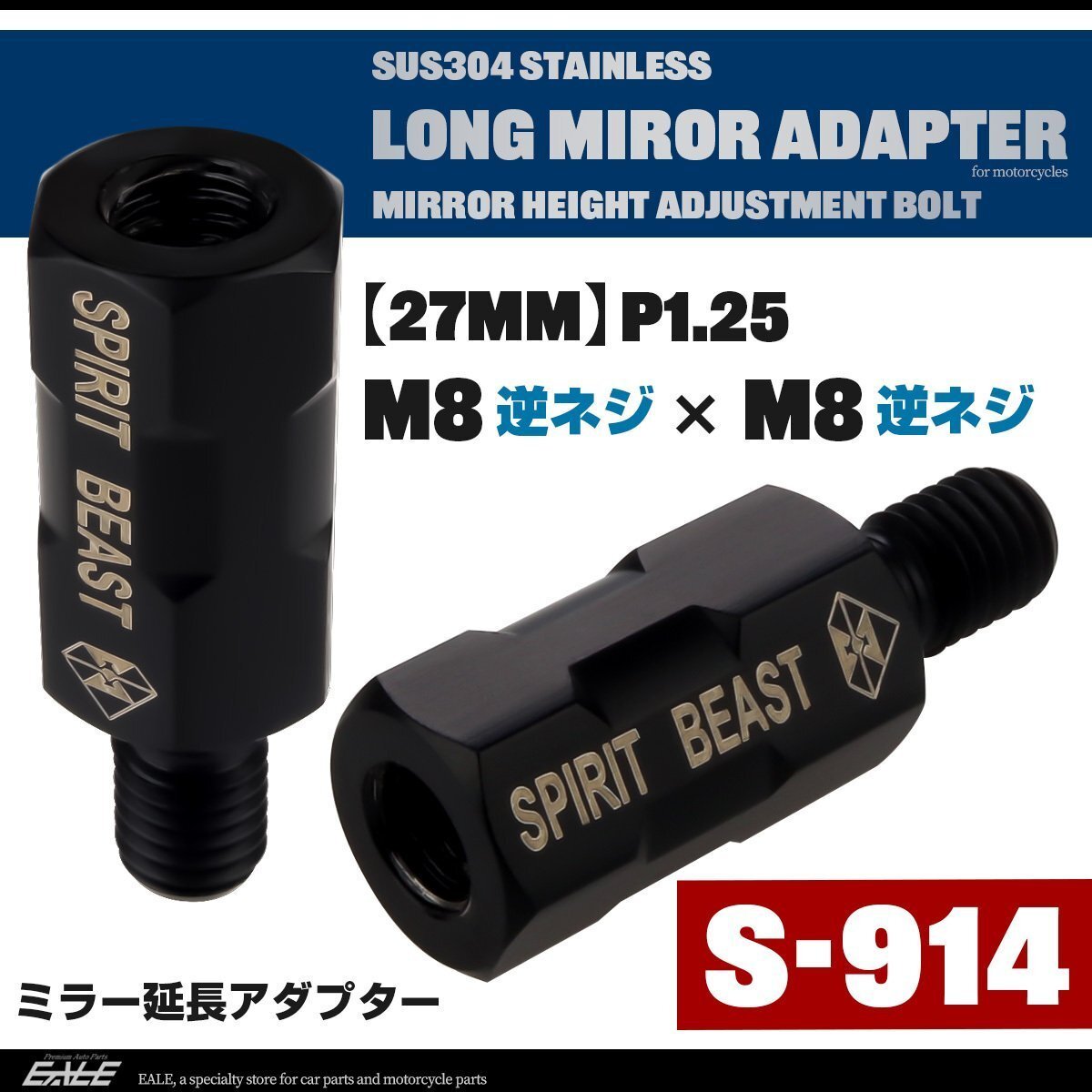 > バイク ミラー 延長 ロングアダプター 27mm 車体側 M8逆ネジ / ミラー側 M8逆ネジ P1.25 ブラック SUS304 ステンレス製 S-914