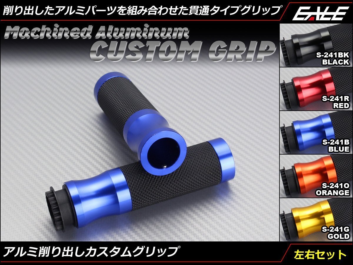 > CNC アルミ 削り出し 貫通タイプ カスタム グリップ 左右セット 22.2mm ハンドル用 スロットルパイプ付き ブラック S-241-BK