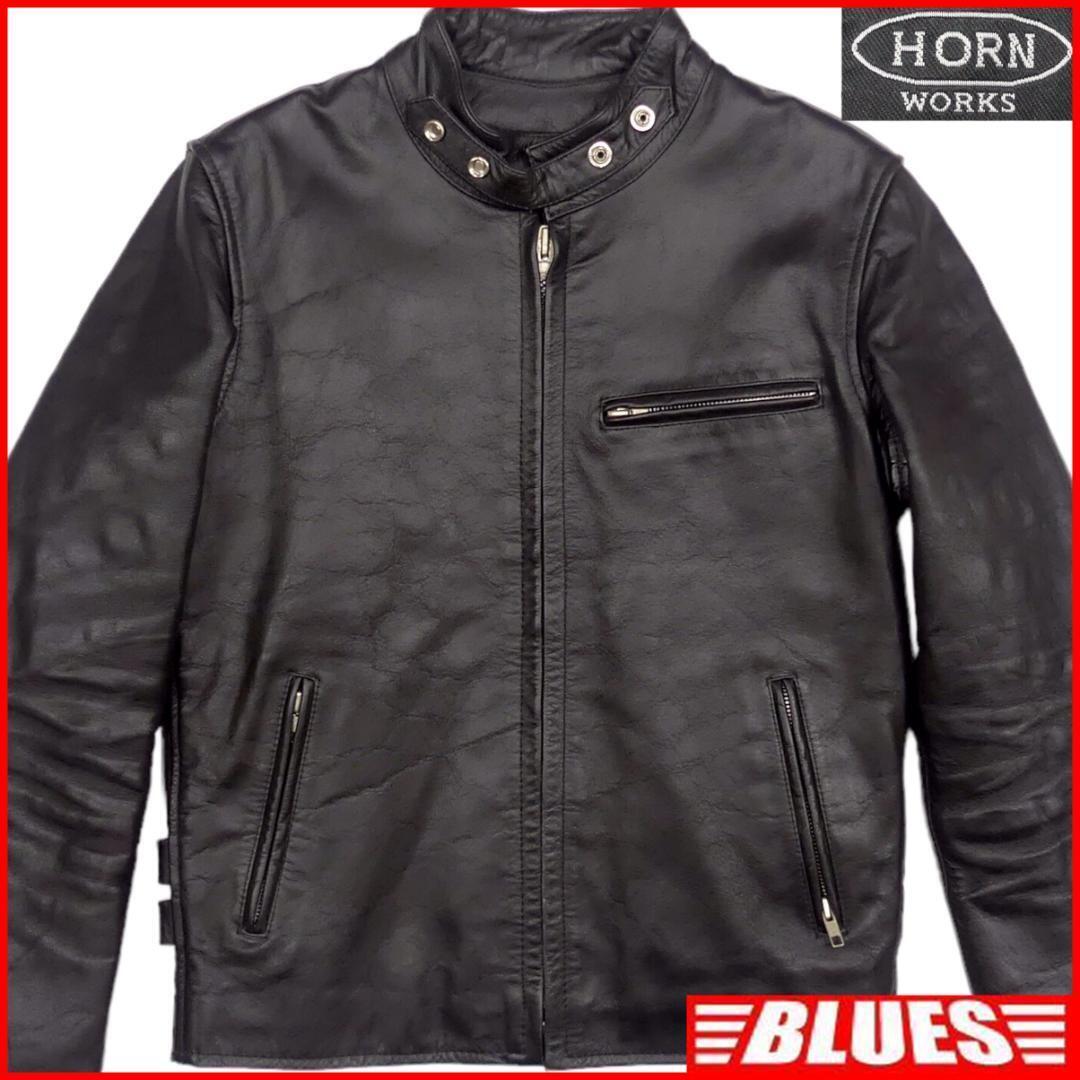 - 即決★HORN WORKS★メンズ S レザーライダースジャケット ホーンワークス 黒 本革 シングル 本皮 パンクロック ライディング ツーリング