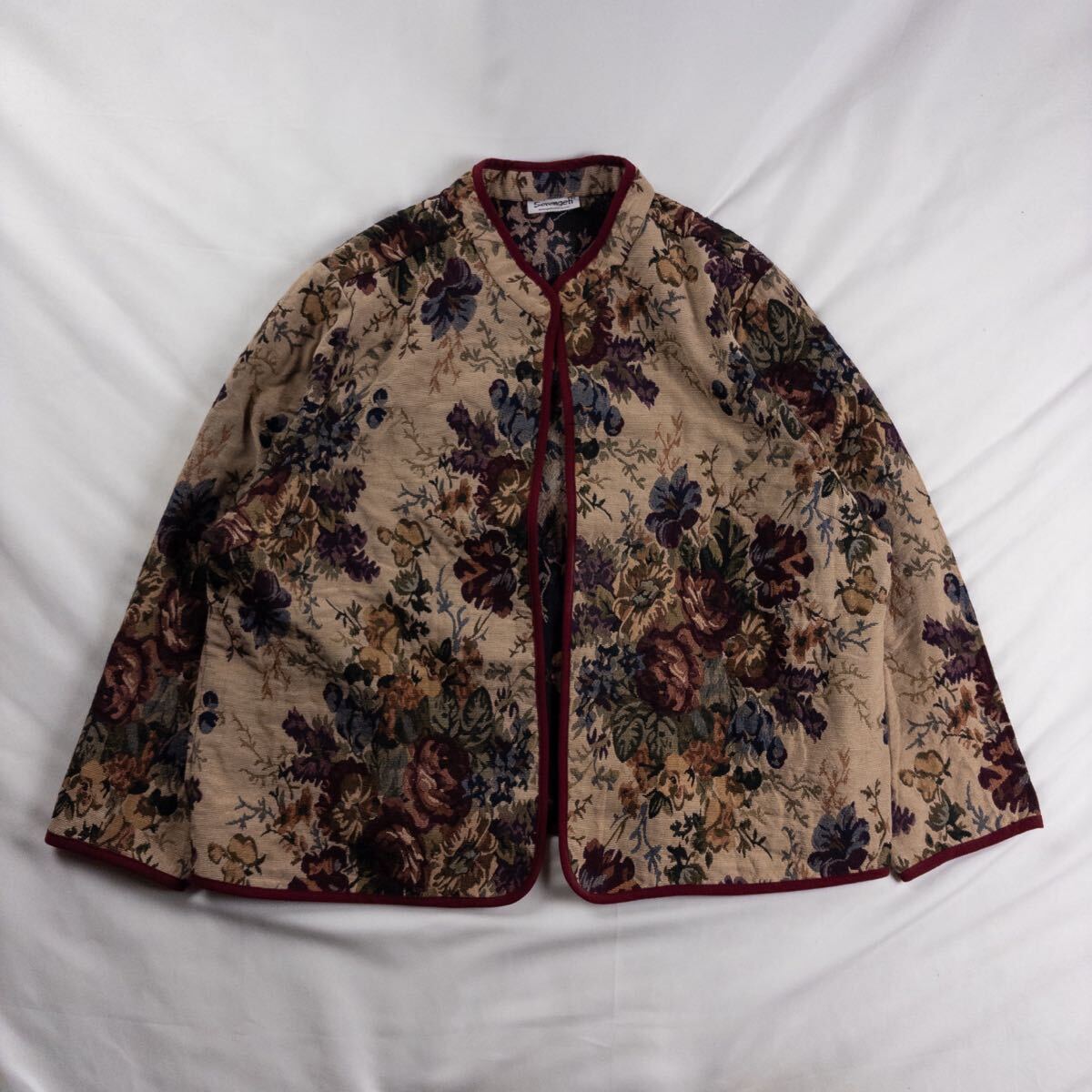 > US Vintage 90s Serengeti 立体 花柄 リーフ ボタニカル ゴブラン織り ジャカード織り アート レトロ 短丈 ショート丈 総柄 ジャケット