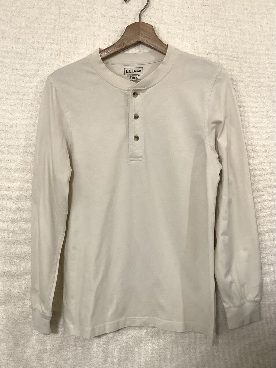 > L.L BEAN エルエルビーン ヘンリーネック 長袖Tシャツ ベージュ アウトドア カジュアル ビンテージ メンズ 古着 S