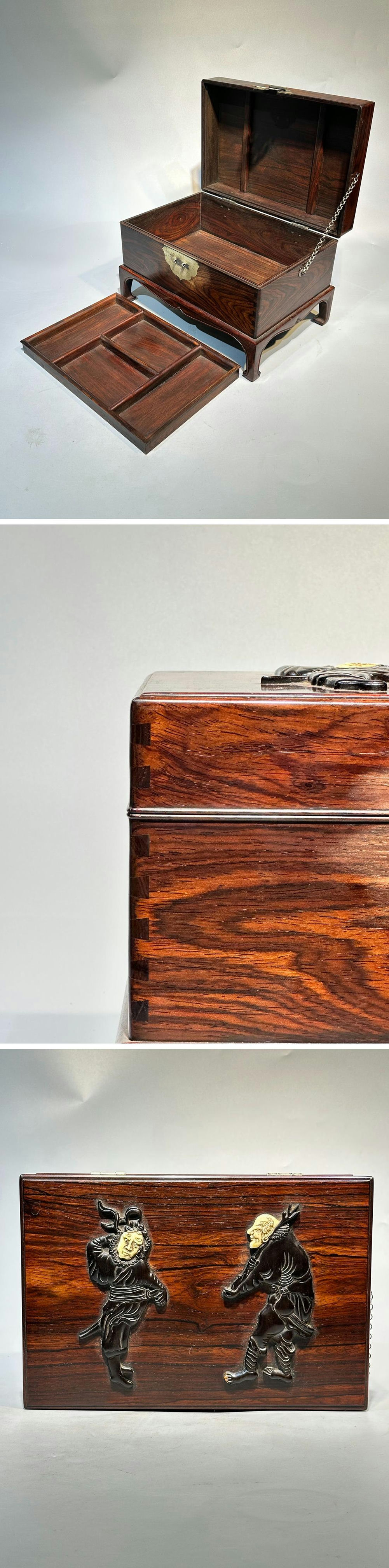 - ■観心・時代旧蔵■K0925清時代 黄花梨文具箱 黄花梨木細密細工★古置物★古賞物★古擺件★蒐集家放出★唐物