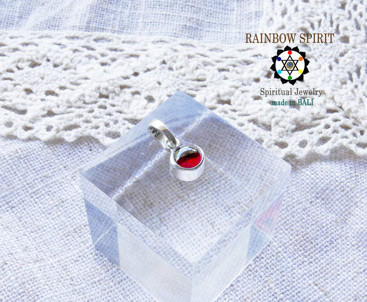 > ☆☆SALE☆☆ガーネットのヒーリングペンダント☆☆1月誕生石/シルバー925/直径6mm/バリ島の僧侶の祈祷&浄化/誕生日プレゼント/出産祝い