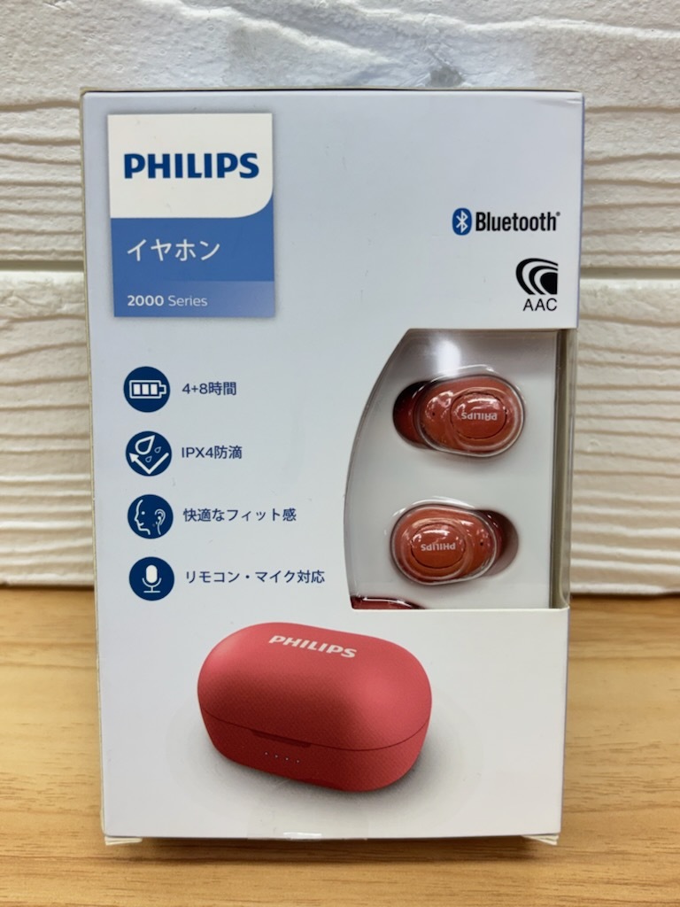 - A547 美品 動確済 PHILIPS 完全ワイヤレスイヤホン TAT2205 Bluetooth5.1 チャージングケース付属 マイク内蔵 IPX4防水 急速充電 レッド