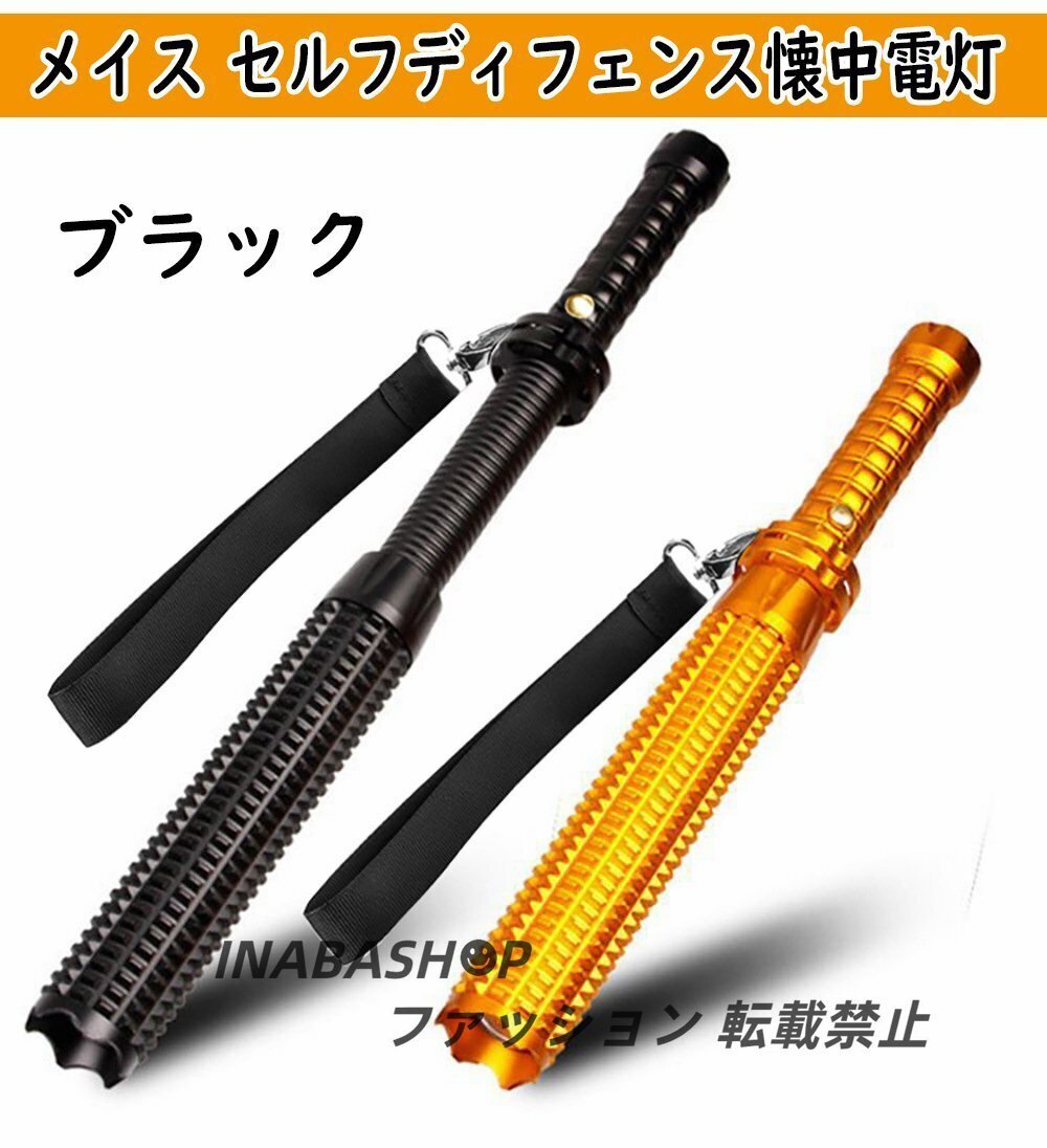- 多機能 懐中電灯 警棒型LEDライト 警棒 伸縮 特殊警棒 防犯 緊急 ハンディライト 護身用避難 夜間 ブラック