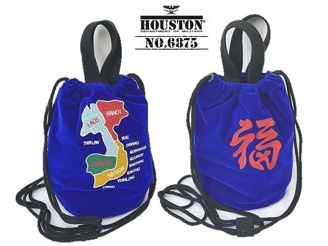 > 【送料無料 20%OFF】HOUSTON ヒューストン VELVETEEN EFFECT BAG・刺繍別珍 エフェクトバッグ 「MAP」柄 NO.6875 ROYAL BLUE