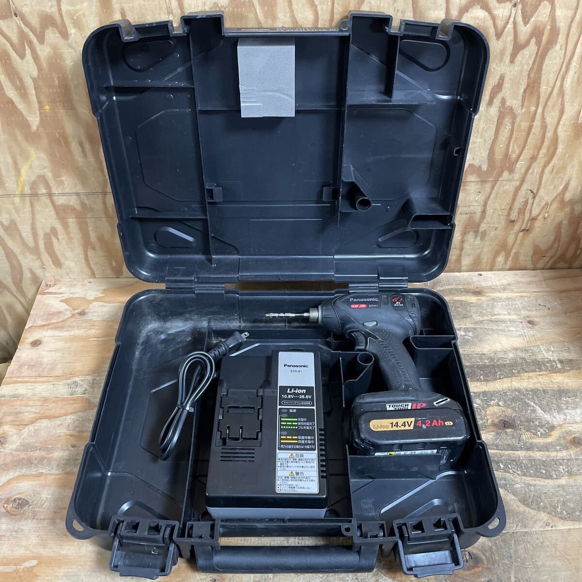 - Panasonic パナソニック 充電インパクトドライバー EZ75A1LS2FTB 黒 14.4V 4.2Ah バッテリー 1個 充電器 ケース付 中古品☆郵