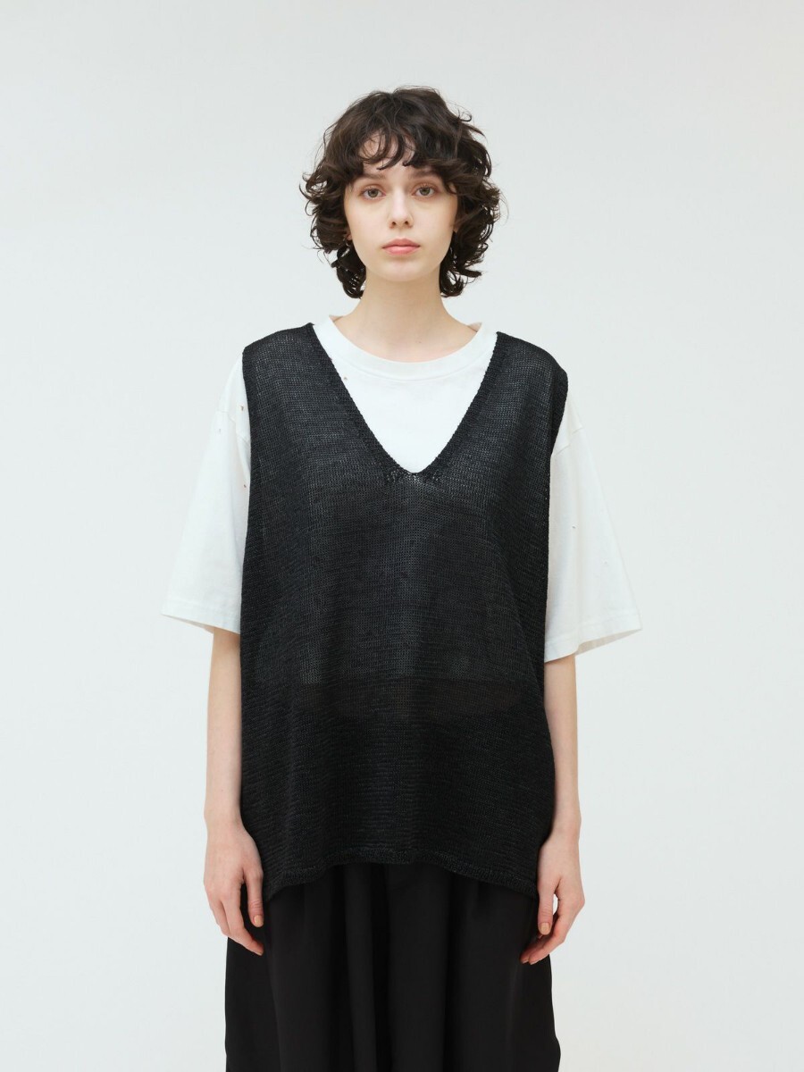 - mizuiro ind ミズイロインド 美品 ワイドVネックベスト ブラック 黒 完売品