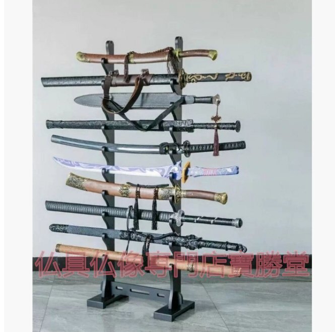> 【寶勝堂】組み立て簡単 刀掛け剣スタンド 刀置き 日本刀 模造刀8連 黒 ブラック