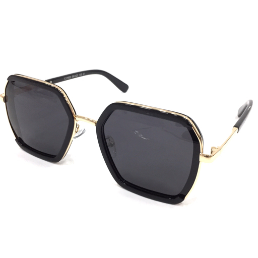 > メーカー不明 CJ1932 サングラス 56□23-135 メンズ レディース アイウェア ブラック × ゴールドカラー ケース付き