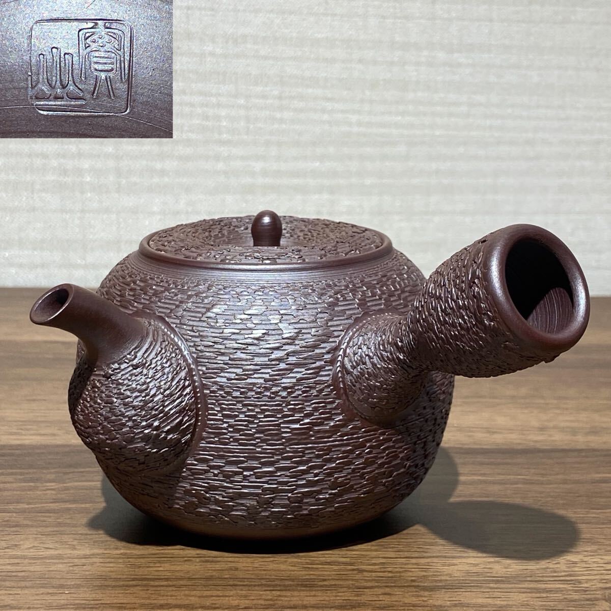 - 萬古焼 急須 在銘 實山 伊藤実山作 横手急須 窯元 実山陶苑 煎茶道具 茶器 茶注 陶磁器 骨董 古美術 ヴィンテージ