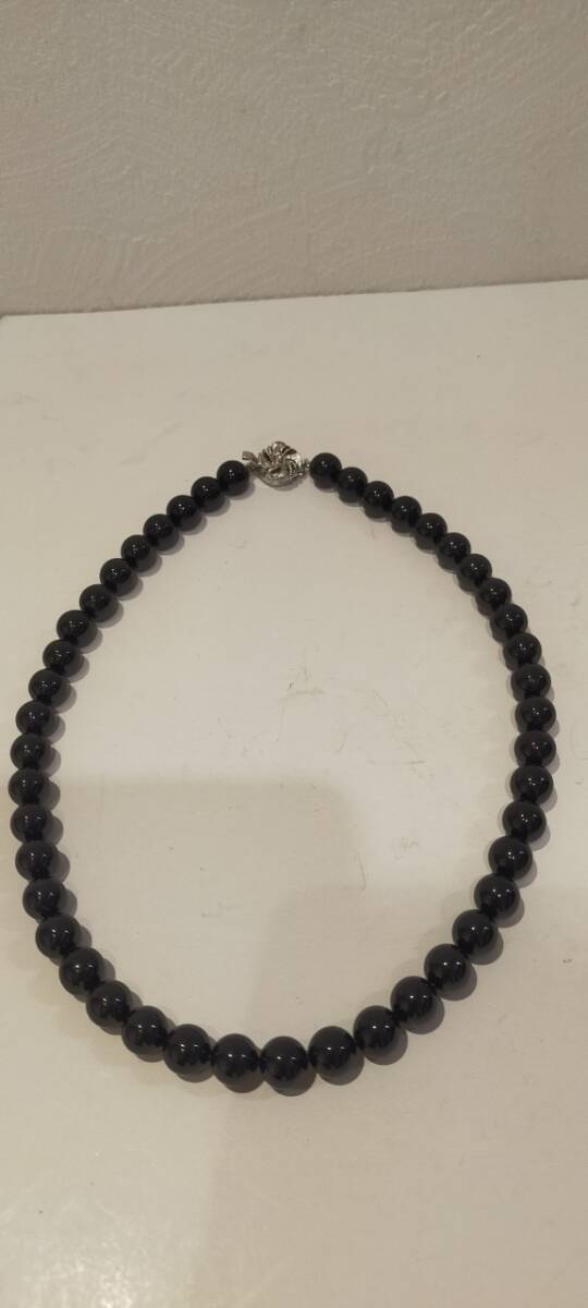 - オニキス ネックレス 39cm 8mm玉 SILVER 留め金 70732
